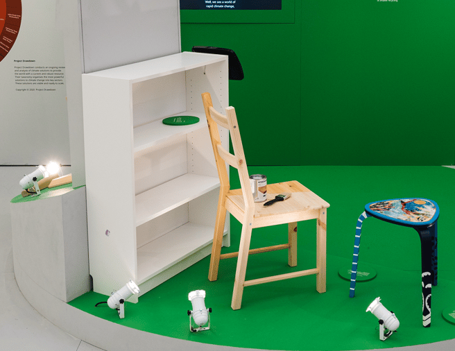 The exhibition ‘Assembling our Future’ showcases and brings to life how IKEA accelerates climate action with partners across the value chain and beyond. The exhibition is divided into six sections: Home, Neighbourhood, Retail Operations, Circularity, Materials, and Collaborations, each focusing on new climate solutions across different areas of the IKEA business.